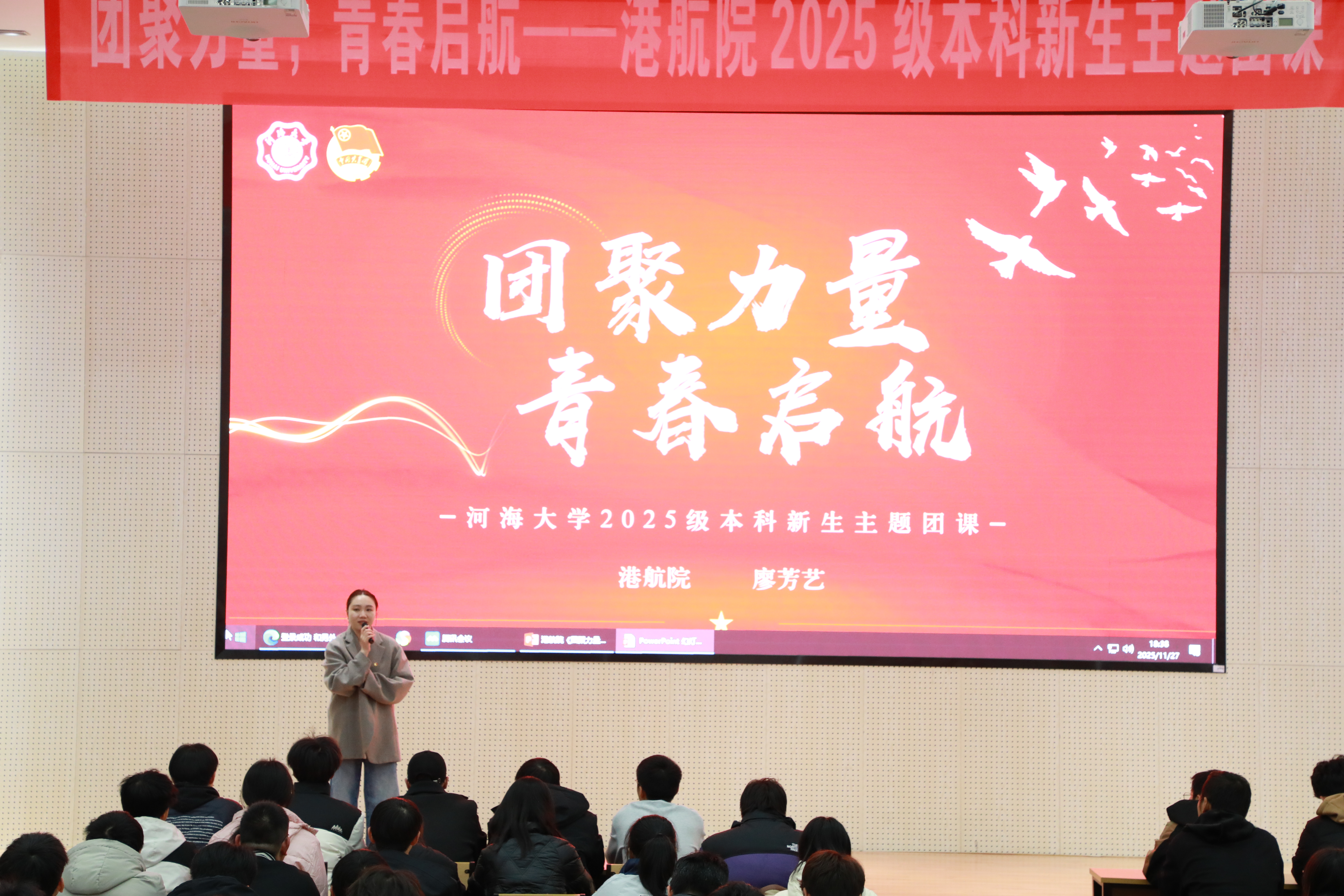 为引领2025级本科新生筑牢思想根基、明确青春方向,11月27日晚,NT动漫 团委书记廖芳艺老师在江宁校区乐学楼208室为2025级本科新生讲授主题团课,2025级本科生辅导员王恒星老师主持。