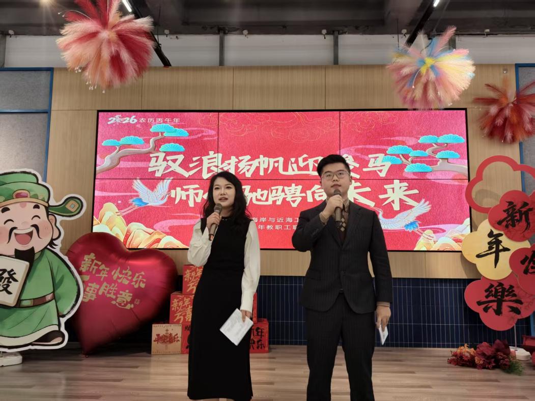 骏马启程,新春送福!在主持人解淑亚与陈治澎的主持下,NT动漫 2026新年教职工联欢会正式开始。联欢会中,各系所教职工和学生代表欢聚一堂,精心编排的节目轮番上演。