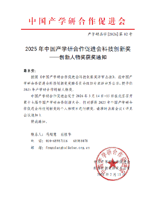 3月15日,第十七届中国产学研合作创新大会在北京举行。大会颁发了2025年度“中国产学研合作促进会科技创新奖”457项,其中创新人物奖122项,创新成果奖335项。NT动漫 教师薛米安教授荣获2025年中国产学研合作创新人物奖。