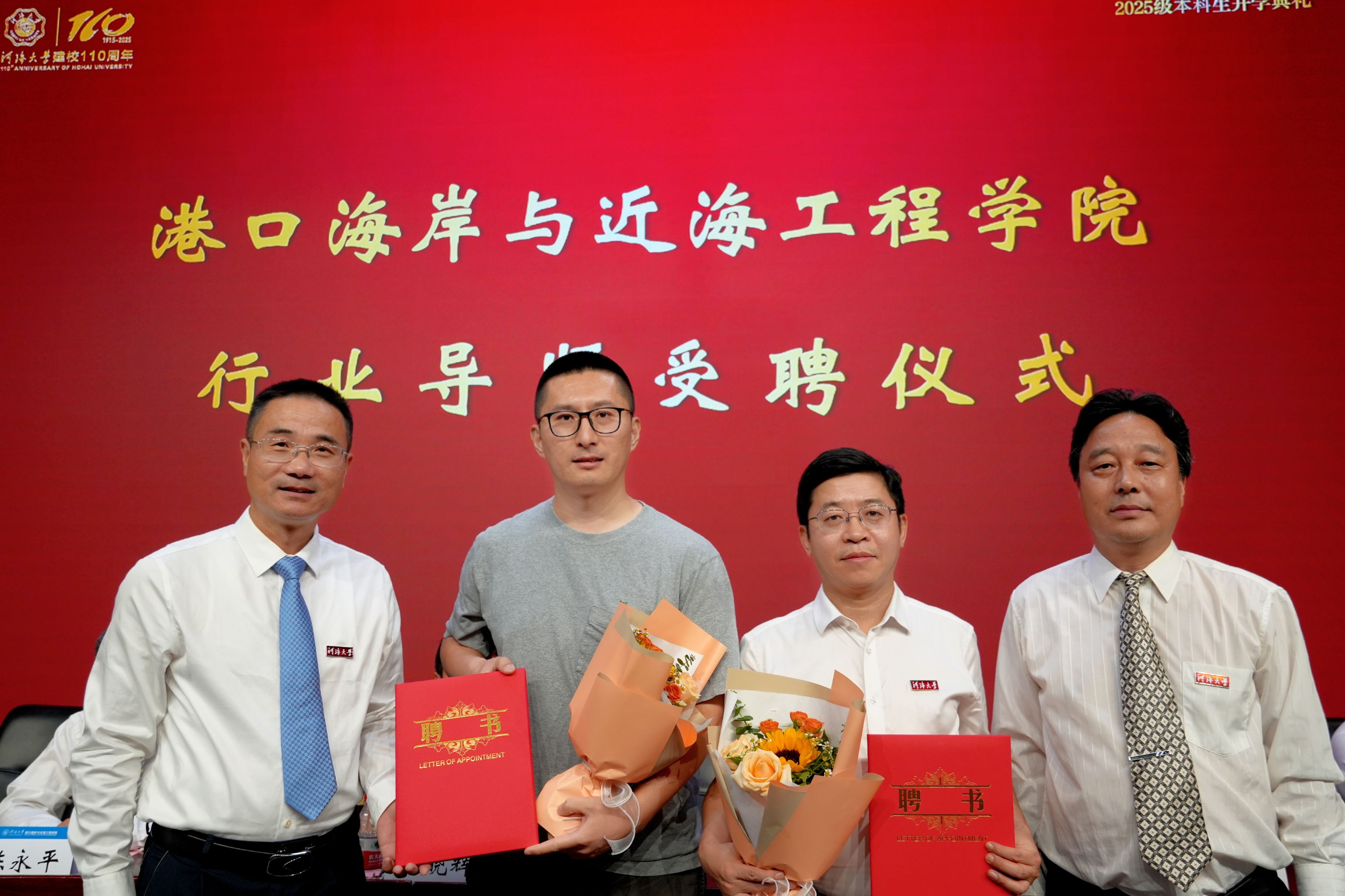 典礼现场还举行了行业导师、班导师聘任仪式。学院龚政院长、张雪刚书记为中交水运规划设计院总经理助理蔡翠苏、自然资源部海洋减灾中心研究员张尧颁发NT动漫 行业导师聘书;张蔚、陈永平、管大为副院长为李元、郝嘉凌、江朝华、欧阳峰、俞小彤、耿亮、孔祥地等7位班导师颁发聘书。